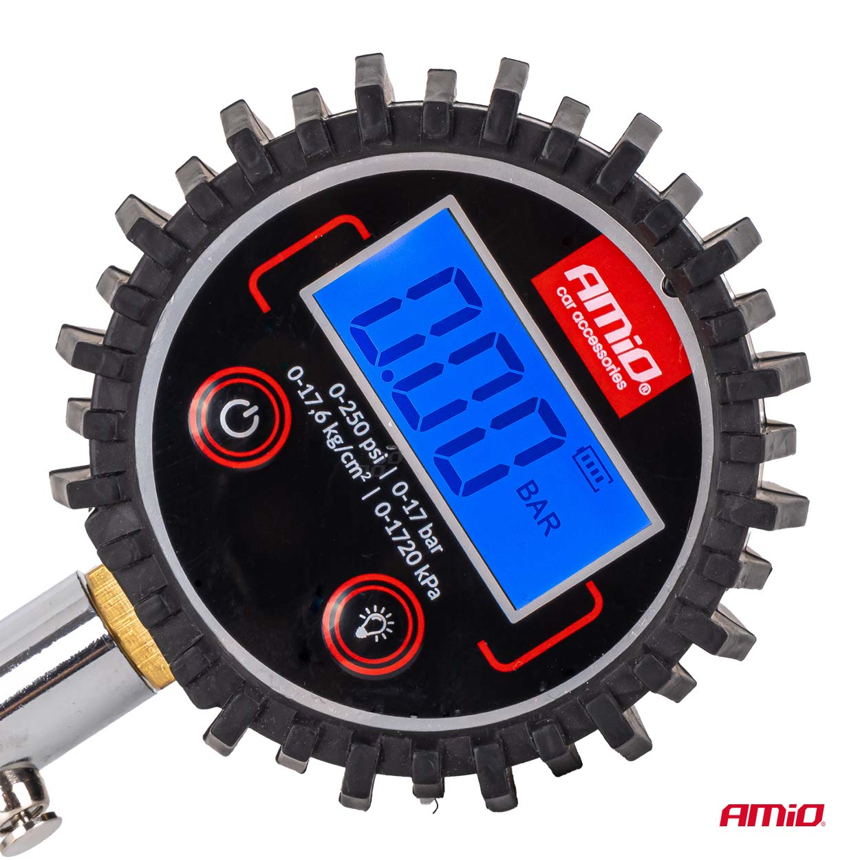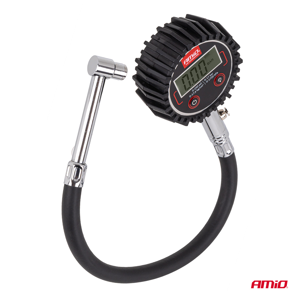 Digitaalne rehvi manomeeter voolikuga ja õhutusventiiliga 17 bar Amio 04465