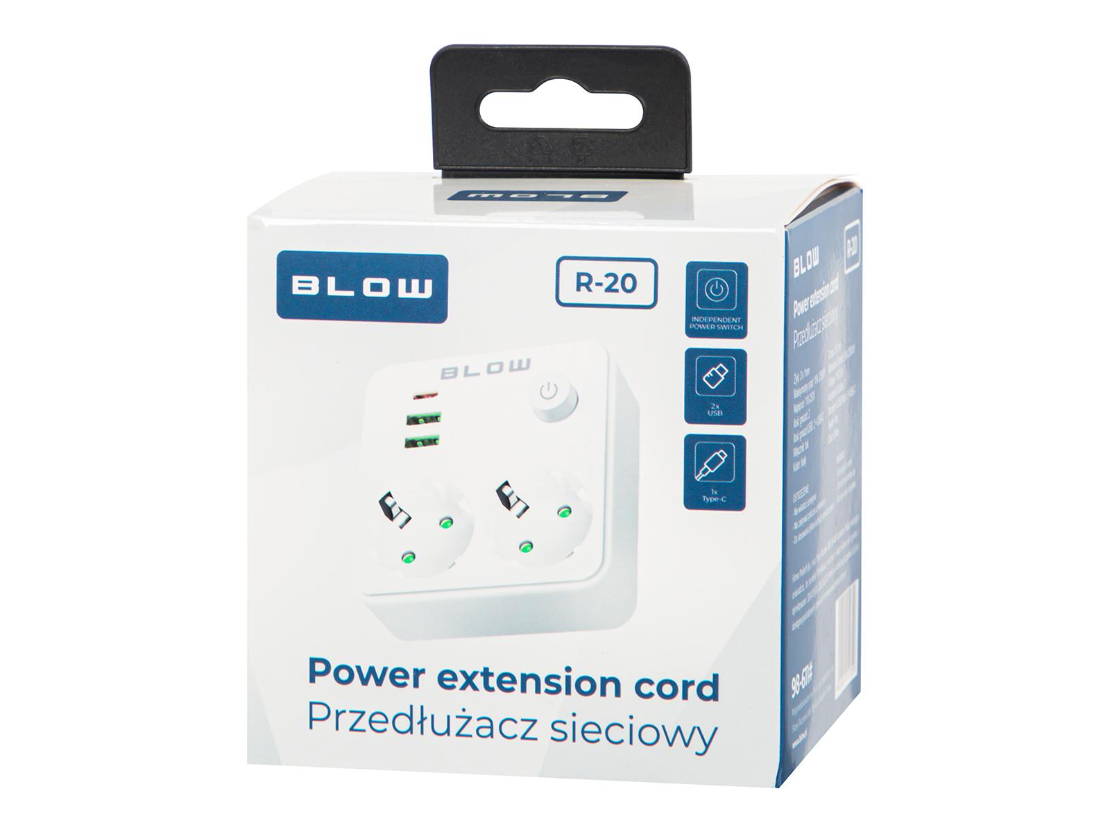 Jaotur 2x230V pesa + 2 USB + USB-C valge Blow 98-611