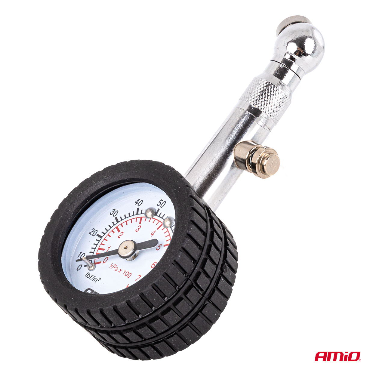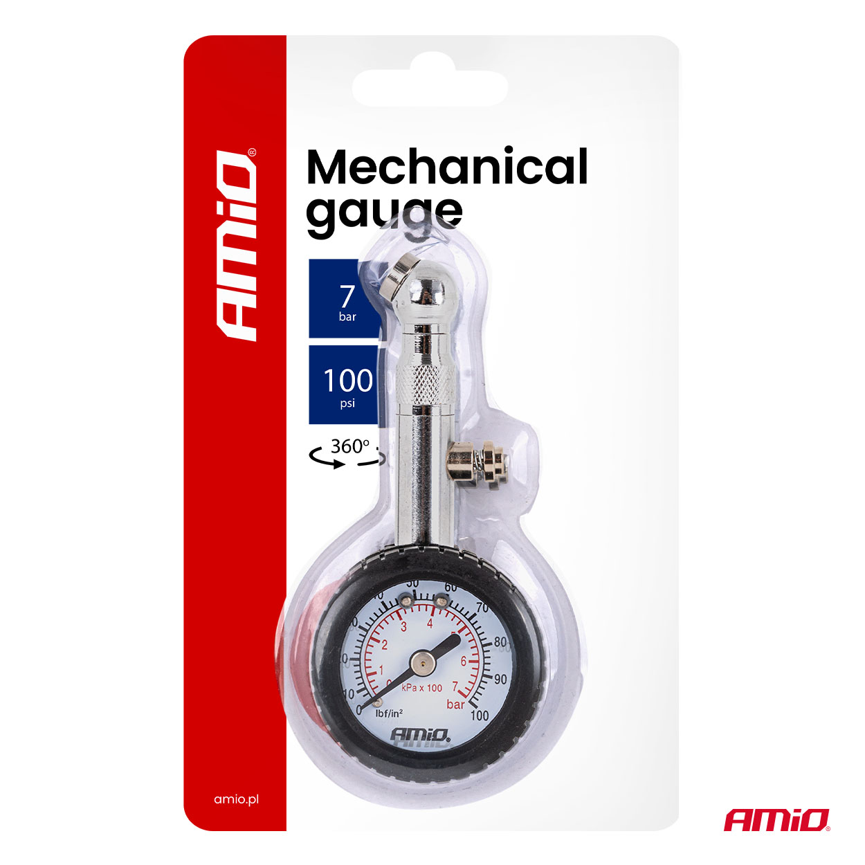 Pööratava pea ja lähtestusventiiliga mehaaniline manomeeter on kompaktne ja funktsionaalne tööriist rehvirõhu kontrollimiseks. Mõõteulatus kuni 7 baari võimaldab täpseid mõõtmisi sõiduautodes ja kergetes tarbesõidukites. Liikuv pea hõlbustab juurdepääsu ventiilidele keerulistes asendites ja vabastusventiil võimaldab rõhku kiiresti alandada ilma seadet eemaldamata. Analoogskaala tagab töökindluse ja välistab vajaduse toiteallika järele.