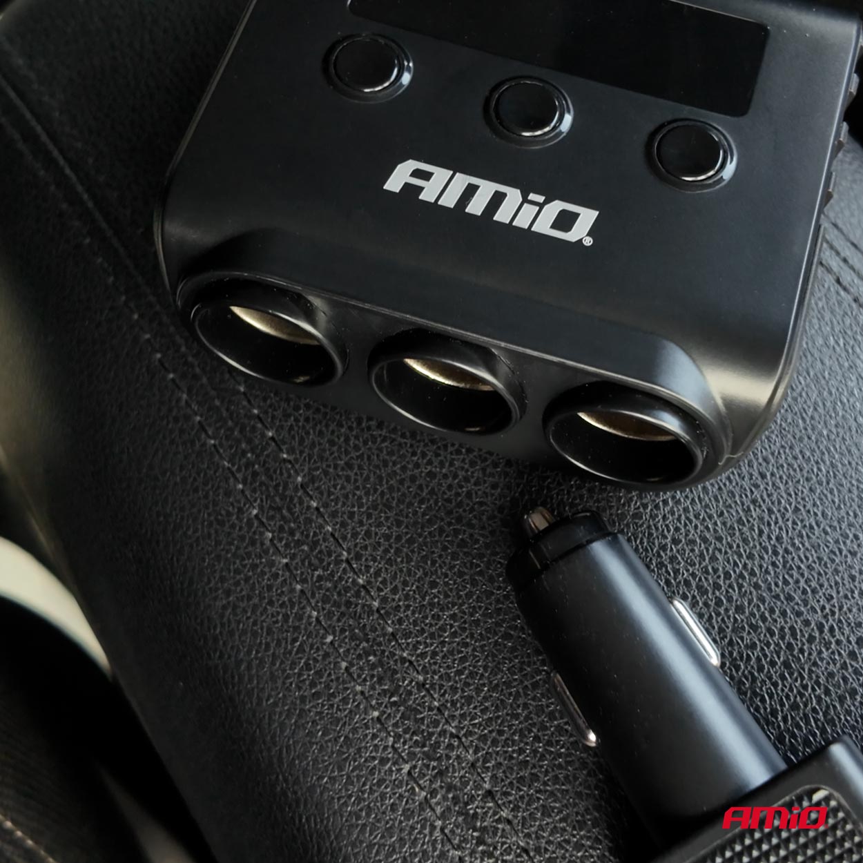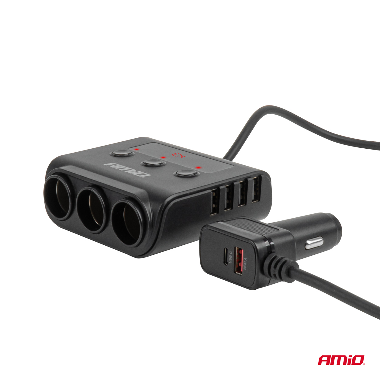 Sigaretisüütaja hargmik laadijaga 4xUSB-A QC3.0 voltmeetriga PD 3.0 180W Amio 04835