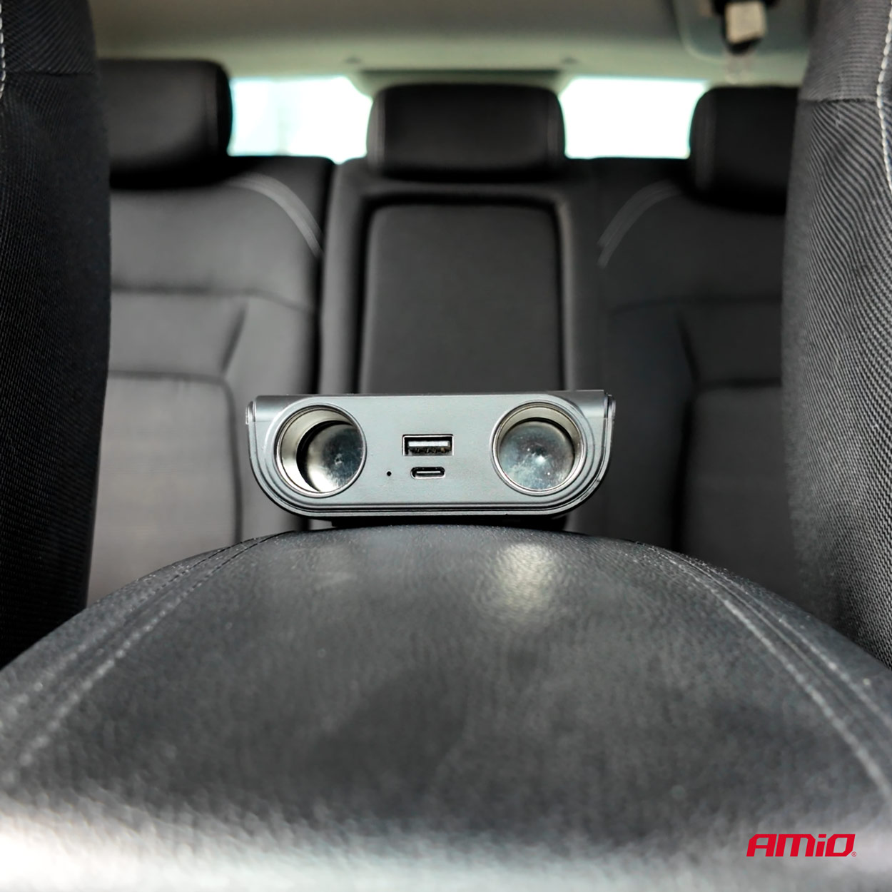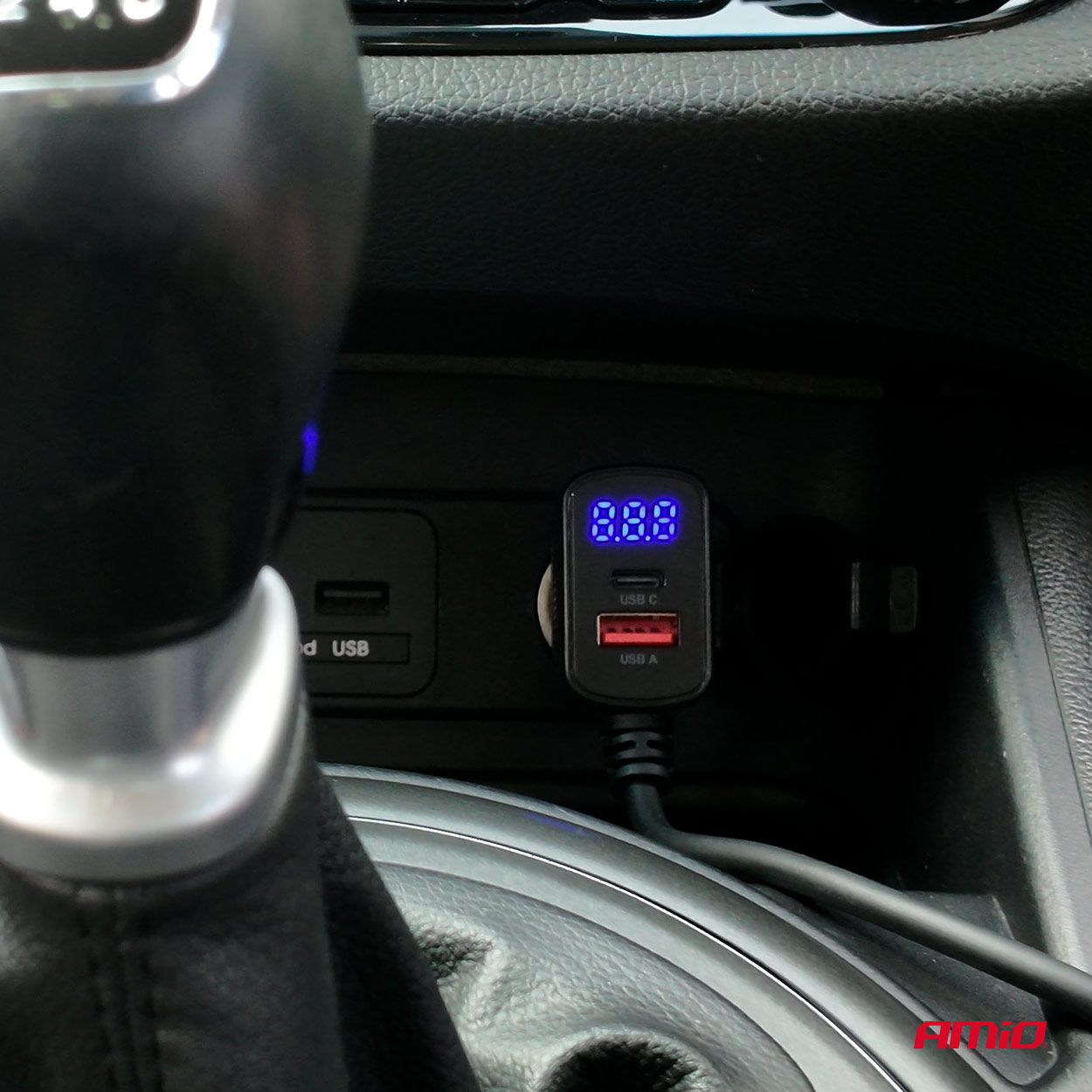 Sigaretisüütaja hargmik laadijaga USB-A USB-C QC3.0, voltmeeter PD3.0.120W Amio 04837